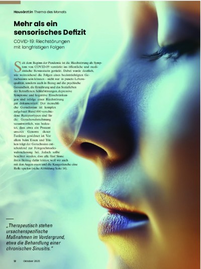 Im Magazin „Hausärzt:in“ Ausgabe 10/2025 schreibe ich über COVID-bedingte Riechstörungen, Diagnostik und die Möglichkeit, den Geruchsinn zu trainieren.